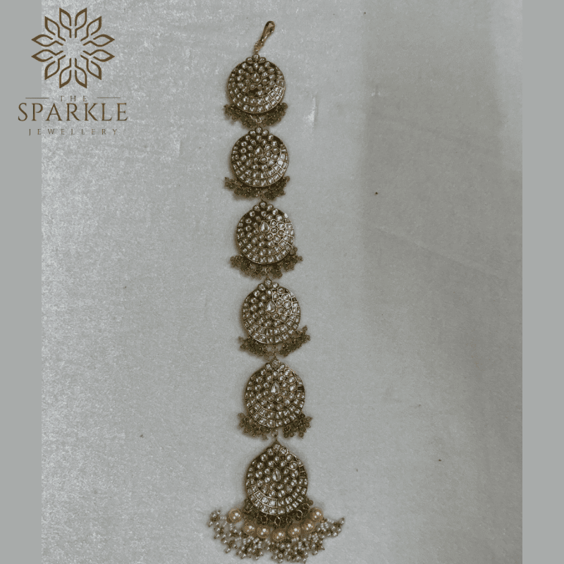 HB58-Ivory White Jadau Pachi Kundan Hair Braid with Pearl Drops | 18K Gold Plated South Indian & Punjabi Hair Accessory – The Sparkle Jewellery