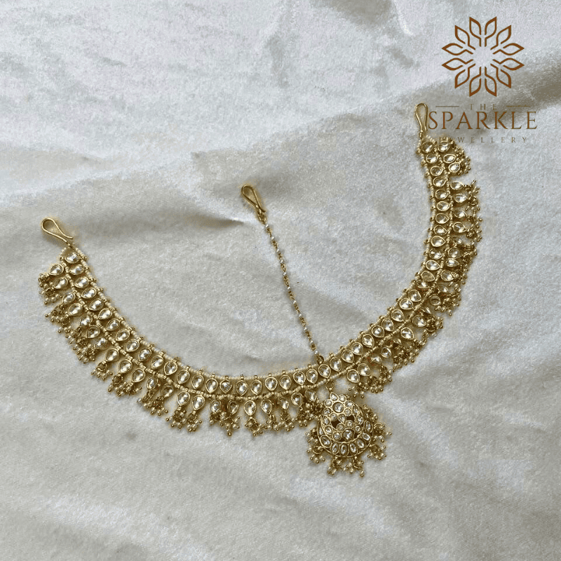 M03-Jadau Pachi Kundan Gold Plated Matha Patti with Central Pendant – Royal Indian Forehead Hair Jewellery | The Sparkle Jewellery