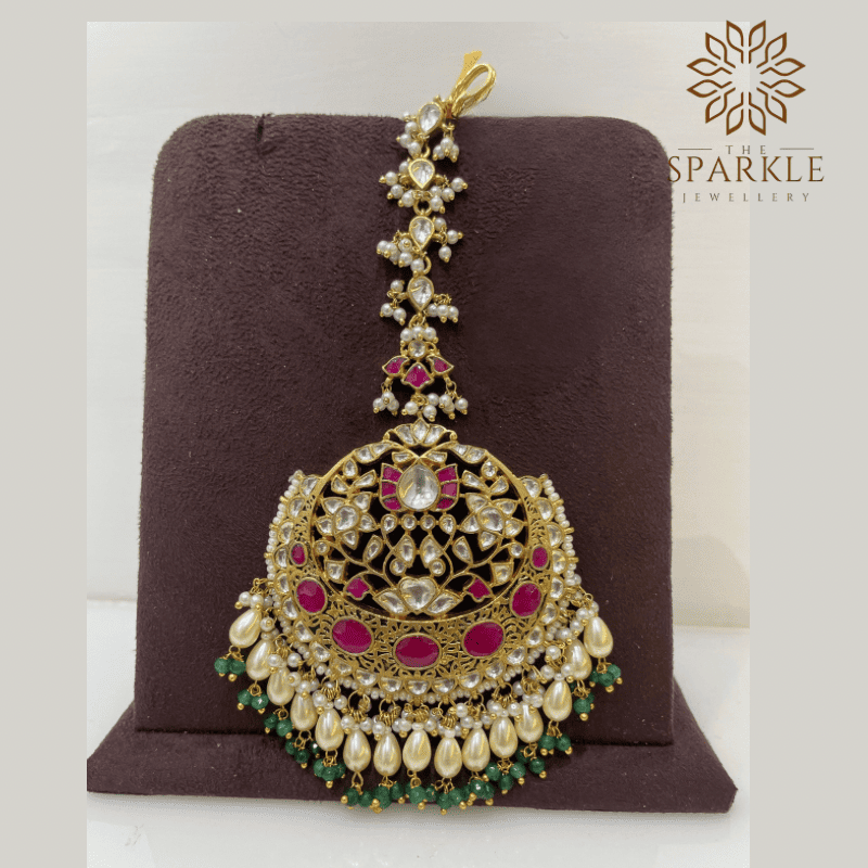 MT08-Luxury Jadau Pachi Kundan 22K Gold-Plated Bridal Passa with Ruby & Emerald Stones – The Sparkle Jewellery