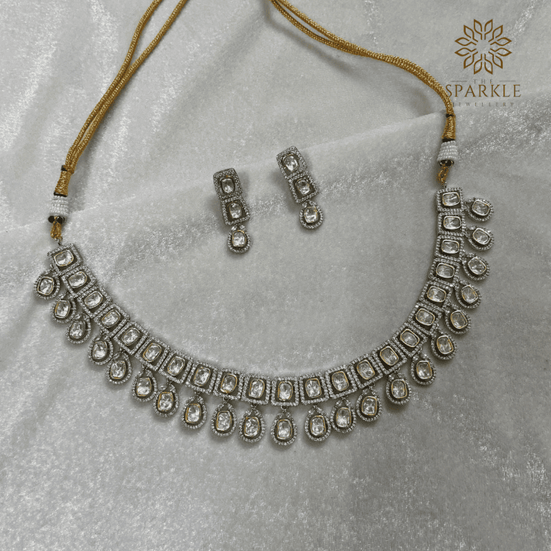 N14-Premium Polki Necklace Set in Gold Finish – Elegant Designer Jewellery by The Sparkle Jewellery