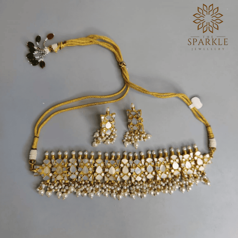 N81-Mother of Pearl (MOP) Gold Plated Choker Necklace Set with Pearl Drops – Luxury Indian Designer Jewellery | The Sparkle Jewellery